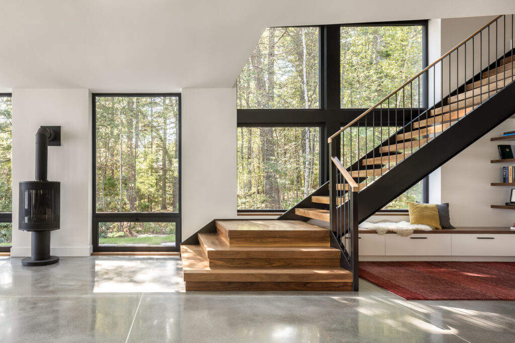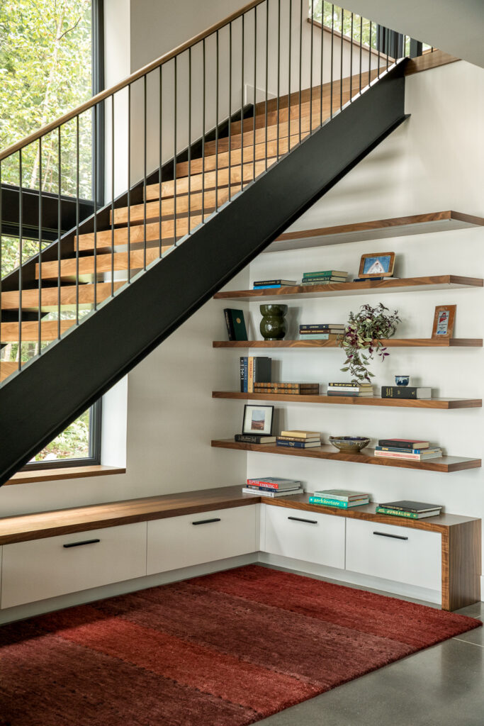 Our client wanted a modern, energy-smart home, and this design delivers. Featuring Shou Sugi Ban siding, floor to ceiling Schüco windows and a geothermal heating and cooling system, this home achieves net-zero performance while maintaining sleek, contemporary style. Every detail reflects a balance of sustainability, comfort and cutting-edge design.